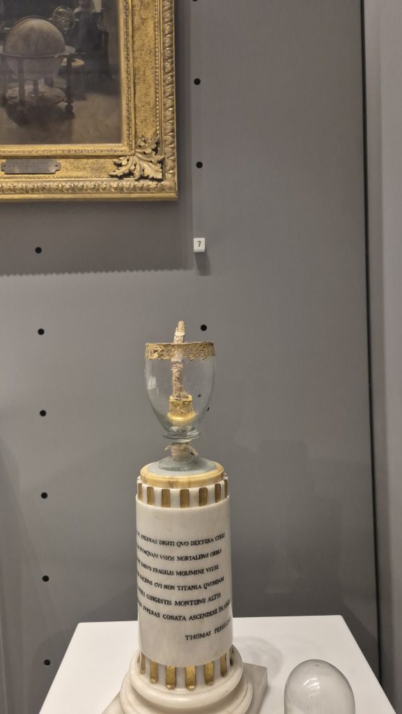 당시 누군가가 그의 엄지·검지·중지 세 손가락과 치아를 가져갔는데, 이 손가락들은 천체 관측에 사용했을 것으로 추정되는 상징적인 부위였습니다. 흩어진 부위들은 세월 속 자취를 감추었다가, 2009년 발견되어 다시 공개되었습니다. 이곳 갈릴레이 박물관에서는 오른손 중지를 직접 볼 수 있습니다.